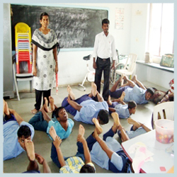 Our Special Teacher giving Yoga Exercise to children